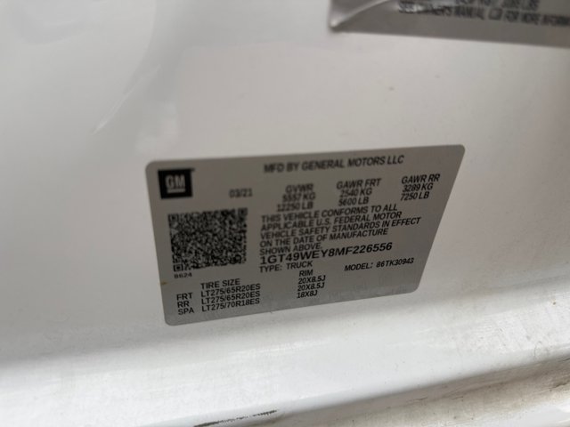 2021 GMC Sierra 3500HD Denali Navigation System,Denali Ultimate Package,Driver Alert Package I,Driver Alert Package II,Gooseneck/5th Wheel Prep Package,Preferred Equipment Group 5SA,Technology Package,7 Speakers,AM/FM radio: SiriusXM with 360L,Bose Premium 7 Speaker Sound System,HD Radio,Premium audio system: Premium GMC Infotainment System,Radio: AM/FM w/Prem GMC Infotainment System & Navi,SiriusXM w/360L,Steering Wheel Audio Controls,Air Conditioning,Automatic temperature control,Electric Rear-Window Defogger,Front dual zone A/C,Rear window defroster,12-Volt Rear Auxiliary Power Outlet,120-Volt Bed Mounted Power Outlet,120-Volt Instrument Panel Power Outlet,Driver Memory,Memory seat,Power driver seat,Power Front Passenger Windows w/Express Up/Down,Power Front Windows w/Driver Express Up/Down,Power Rear Windows w/Express Down,Power steering,Power windows,Remote keyless entry,Remote Vehicle Starter System,Steering wheel mounted audio controls,Universal Home Remote,Manual Tilt-Wheel/Telescoping Steering Column,Speed-sensing steering,Traction control,4-Wheel Disc Brakes,ABS brakes,Dual front impact airbags,Dual front side impact airbags,Electrical Lock Control Steering Column,Front anti-roll bar,Front wheel independent suspension,Keyless Open & Start,Low tire pressure warning,Occupant sensing airbag,Overhead airbag,Power Door Locks,Power Sunroof,Pickup Bed,Brake assist,Electronic Stability Control,Lane Departure Warning System,Auto High-beam Headlights,Delay-off headlights,Front fog lights,Fully automatic headlights,Panic alarm,Security system,Unauthorized Entry Theft-Deterrent System,Speed control,2-Speed Active Transfer Case,220 Amp Alternator,Engine Block Heater,Exhaust Brake,Heavy-Duty 80 Amp Battery,6 Rectangular Chromed Tubular Assist Steps,Auto-dimming door mirrors,Bumpers: body-color,Front License Plate Kit,Heated door mirrors,IntelliBeam Automatic High Beam On/Off,LED Cargo Area Lighting,Polished Exhaust Tip,Power door mirrors,Power-Retractable Assist Steps,ProGrade Trailering System,Rear step bumper,Signature Denali Grille w/High Gloss Black Mesh,Spray-On Pickup Bed Liner w/Denali Logo,Turn signal indicator mirrors,Winter Grille Cover,2 USB Ports (First Row),2 USB Ports Inside Console,2nd Row Dual USB Charge-Only Ports,4G LTE Wi-Fi Hotspot Capable,Apple CarPlay/Android Auto,Auto-Dimming Inside Rearview Mirror w/Camera,Auto-dimming Rear-View mirror,Automatic Emergency Braking,Bed View Camera w/2 Trailer Camera Provisions,Compass,Compass Located In Instrument Cluster,Driver door bin,Driver vanity mirror,Floor-Mounted Center Console,Following Distance Indicator,Forward Collision Alert,Front reading lights,Garage door transmitter,Genuine wood console insert,Genuine wood door panel insert,GMC Connected Access Capable,HD Rear Vision Camera,HD Surround Vision w/2 Trailer View Camera Provisions,Heated steering wheel,Illuminated entry,Lane Change Alert w/Side Blind Zone Alert,Multicolor 15 Diagonal Head-Up Display,OnStar & GMC Connected Services Capable,Outside temperature display,Overhead console,Passenger vanity mirror,Rear Cross Traffic Alert,Rear reading lights,Rear seat center armrest,Safety Alert Seat,Tachometer,Telescoping steering wheel,Tilt steering wheel,Trip computer,Ultrasonic Front & Rear Park Assist,Voltmeter,Wireless Charging,Wireless Phone Projection,10-Way Power Driver Seat Adjuster w/Lumbar,10-Way Power Passenger Seat Adjuster w/Lumbar,2nd Row Heated Outboard Seats,Forge Perforated Leather-Appointed Seat Trim,Front Bucket Seats,Front Center Armrest,Heated Driver & Front Outboard Passenger Seats,Heated front seats,Heated rear seats,Power passenger seat,Split folding rear seat,Ventilated Driver & Front Passenger Seats,Ventilated front seats,Passenger door bin,Chrome Recovery Hooks,Hitch Guidance w/Hitch View,In-Vehicle Trailering System App,Integrated Trailer Brake Controller,Alloy wheels,Deep-Tinted Glass,Power Sliding Rear Window w/Defogger,Variably intermittent wipers, GOOSENECK / 5TH WHEEL PREP PACKAGE -- Hitch platform to accept Gooseneck or 5th Wheel hitch. Includes hitch platform with tray to accept ball stamped bed holes with removable caps installed and bed mounted 7-pin trailer harness (similar to UY2 harness)., REAR AXLE 3.42 RATIO, TECHNOLOGY PACKAGE includes (DRZ) Rear Camera Mirror and (UV6) Multi-color 15 Diagonal Head-Up Display, SUMMIT WHITE, SINGLE REAR WHEELS (STD), ENGINE BLOCK HEATER, JET BLACK FORGE PERFORATED LEATHER SEATING SURFACES, SUNROOF POWER, WHEELS 20 (50.8 CM) MULTI-DIMENSIONAL POLISHED ALUMINUM (STD), LICENSE PLATE KIT FRONT, WINTER GRILLE COVER, MULTI-COLOR 15 DIAGONAL HEAD-UP DISPLAY, AUDIO SYSTEM PREMIUM GMC INFOTAINMENT SYSTEM WITH NAVIGATION AND 8 DIAGONAL COLOR TOUCH-SCREEN includes multi-touch display AM/FM stereo Bluetooth streaming audio for music and most phones; featuring wireless Android Auto and Apple CarPlay capability for compatible phones advanced voice recognition in-vehicle apps personalized profiles for infotainment and vehicle settings. Includes greater memory. (STD) (Includes (PZ8) Hitch Guidance with hitch view.), REAR CAMERA MIRROR inside rearview auto-dimming with full camera display, ALTERNATOR 220 AMPS, ASSIST STEPS POWER-RETRACTABLE with LED perimeter lighting, TRANSMISSION ALLISON 10-SPEED AUTOMATIC, TIRE SPARE LT275/70R18 ALL-TERRAIN BLACKWALL (STD), TIRES LT275/65R20 ALL-TERRAIN BLACKWALL (STD), DENALI PREFERRED EQUIPMENT GROUP includes standard equipment, GVWR 12 250 LBS. (5557 KG) WITH SINGLE REAR WHEELS, SEATS FRONT BUCKET WITH CENTER CONSOLE (STD), DENALI ULTIMATE PACKAGE includes (CWM) Technology Package and (CF5) power sunroof, ENGINE DURAMAX 6.6L TURBO-DIESEL V8 B20-DIESEL COMPATIBLE (445 hp [332 kW] @ 2800 rpm 910 lb-ft of torque [1220 Nm] @ 1600 rpm) (Includes (K05) engine block heater.), EXHAUST BRAKE, Rear Parking Aid, Blind Spot Monitor, Cross-Traffic Alert, Lane Departure Warning, Front Collision Mitigation, Front Collision Warning, Automatic Highbeams, Tow Hitch, Running Boards/Side Steps, Locking